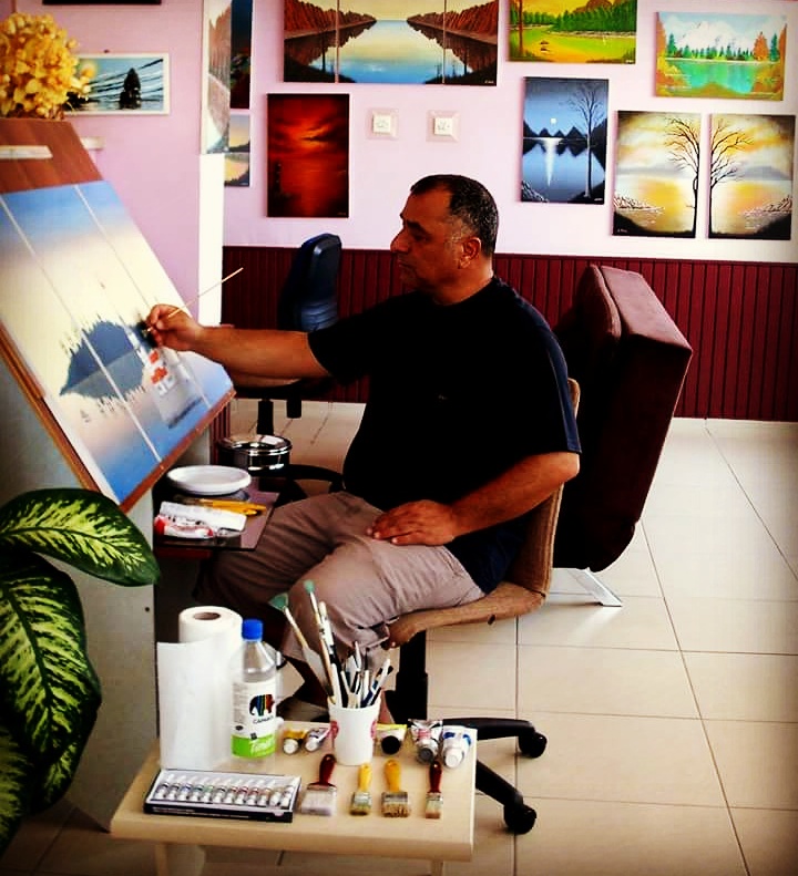 Resimlerimin büyük bir kısmı Mersin’deki atölyemde, bu sakin çalışma ortamında ortaya çıkıyor.